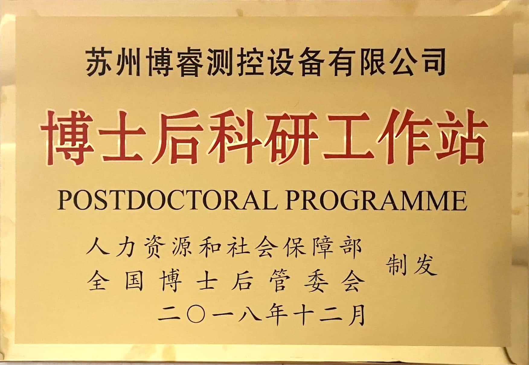 經國家人力資源和社會保障部及全國博士后管理委員會審核批準,蘇州博睿測控設備有限公司正式獲批設立國家博士后科研工作站。